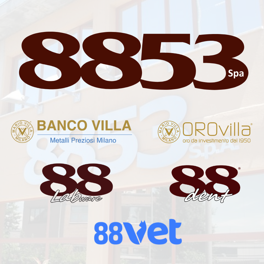 Successivamente, negli anni novanta, grazie al suo attuale CEO Giorgio Villa, nasce la 8853 S.p.A., collocata alle porte di Milano (Pero), dov’è presente anche il nostro impianto di produzione. Il nome 8853 S.p.A. deriva dallo storico numero di telefono (02-8853) e tratta sempre metalli preziosi in vari campi: